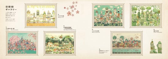 ミモザの街、古の桜と青い都、緑の文明、ジャングルと鳥の楽園、紅リンゴと白雪の城下町など、小さな生き物と季節感あふれる新作の空想の街24点をたっぷり収録。