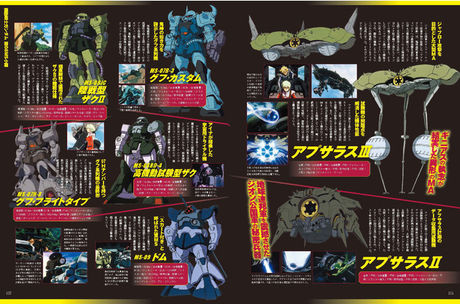 本MOOKは、戦いを中心に地球連邦軍内部の政争やガンダム試作1号機をはじめとする新たに設定されたMSに加えザクIIF2型やゲルググMなど、既存機の系統に属する機体の設定や描写。そして、劇中に描かれる緻密なメカニックや人間ドラマをあますことなく紹介している。