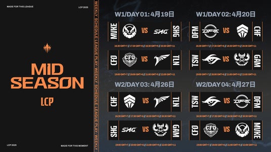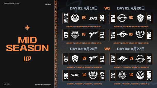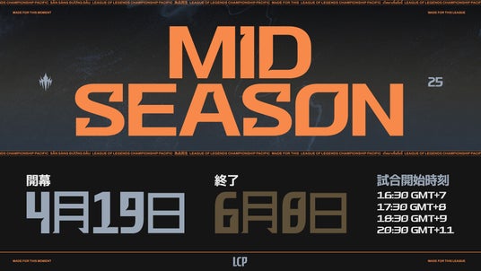 Mid Seasonは4月19日(土)~6月8日(日)にかけて行われます。LCPの各試合日の開始時間は30分早まり、日本時間18時30分となっています。