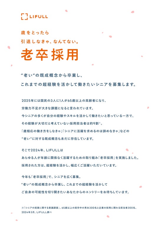 このような背景からLIFULLは2024年に“歳をとったら引退しなきゃ、なんてない。”をコンセプトに「老卒採用」を実施。社内外で多くの反響を得たこのシニアの採用活動を2025年も継続します。