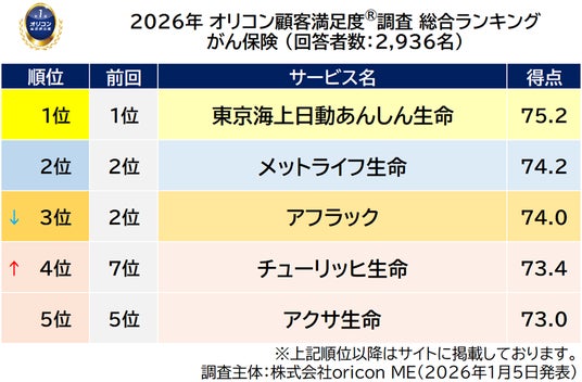 『がん保険』総合ランキング(2026年 オリコン顧客満足度(R)調査)