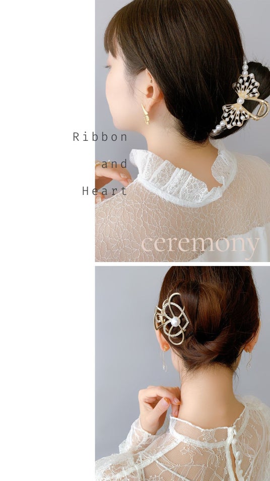 髪をアップスタイルにする方も多いお呼ばれの席にぴったりのバンスクリップ。
