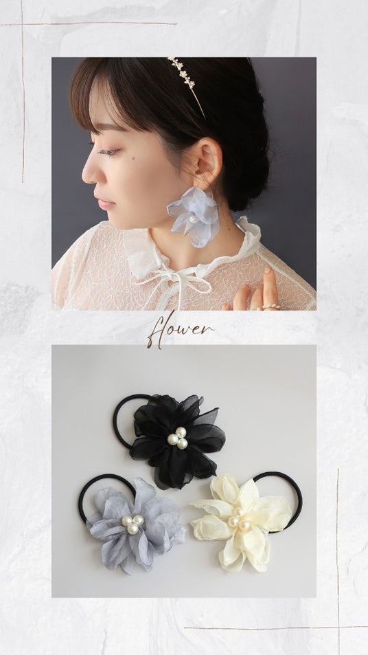 ふんわりしたフラワーモチーフのアクセサリーがおすすめです。