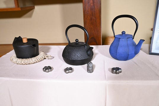 南部鉄器には2つのルーツがあると言われている。1つは平安時代、奥州で藤原氏が近江の国から鋳物づくりの名人を招き、仏具や鉄鍋、釜を造らせたのが始まり。もう1つは江戸時代中期、盛岡で当時の南部藩主が京都から鋳物づくりの名人を招き、茶釜や仏具、鉄瓶の一大産地を築いたこと。その後、昭和34年に奥州と盛岡の職人が交流を深め、2つの産地で造られた鉄器を「南部鉄器」と呼ぶことにしたという。