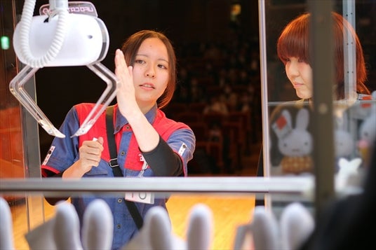 2007年から連続の19回目の開催となった今回も全国の店舗から特に優れた接客技術を誇る17名のクルーたちが集結。フレッシュな若手クルーから十数年のベテランクルーまでが、実際のクレーンゲームやゲーム筐体が設置された舞台上での接客や急な質問対応などのロールプレイを行い、それぞれの考えるホスピタリティやその技術を披露しました。