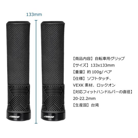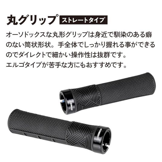 スタンダードな丸型デザインの自転車グリップです(長さ133mm)。