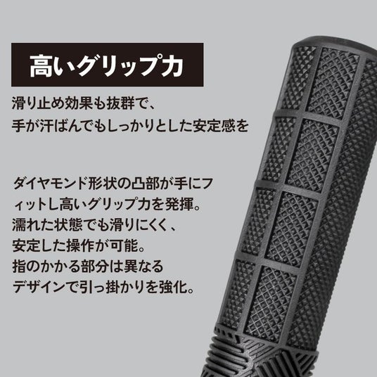 ベース部分にはダイヤモンドカットパターンを採用し、優れたグリップ力を発揮します。