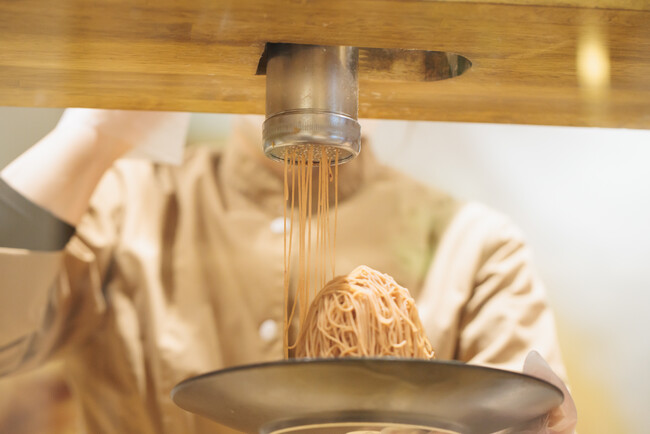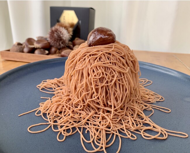 同ブランドでは、独自に開発したアンティーク調の搾り機を使用し、注文ごとにお客様の目の前で特製マロンクリームをたっぷりと搾り、仕上げに利平栗の渋皮煮を乗せて提供します。目の前で、絹糸のように細く搾り出された茶色のマロンクリームが、真っ白なクリームの上にはらはらと広がっていく様子は、とても見応えがありSNS映えする動画が撮影できると話題です。