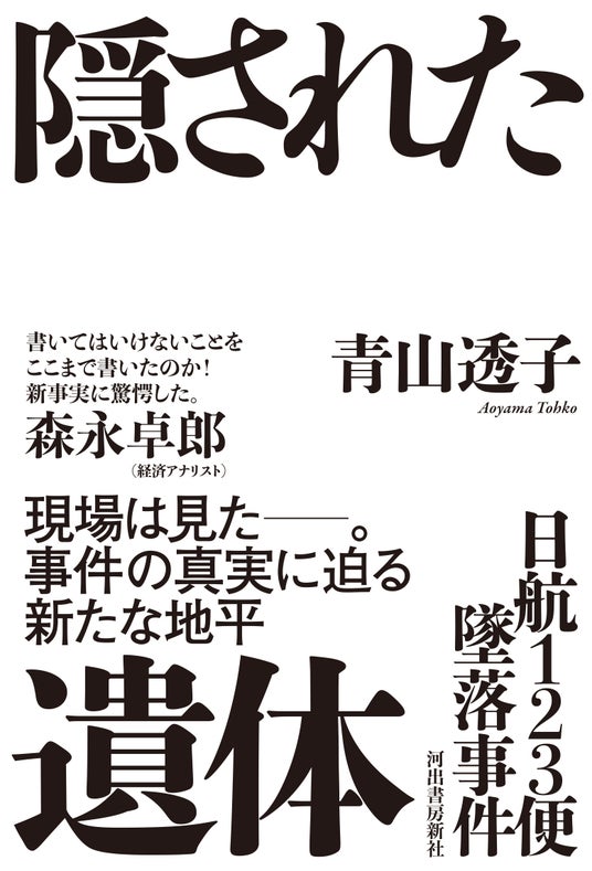 株式会社河出書房新社(本社:東京都新宿区 代表取締役:小野寺優)は、青山透子氏によるノンフィクション『日航123便墜落事件 隠された遺体』を2024年8月13日に発売します。