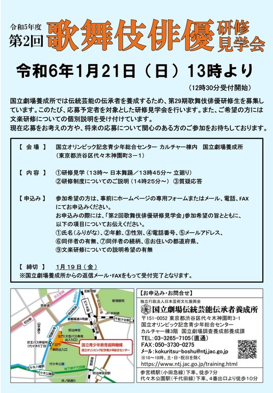 お問合せ:国立劇場伝統芸能伝承者養成所
