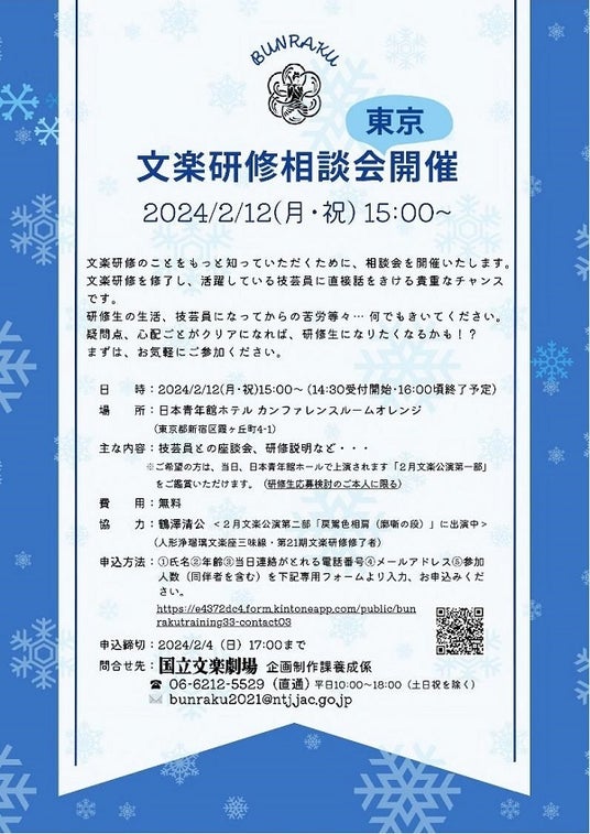 【2月12日@東京】文楽研修相談会