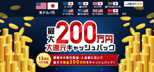 『外貨ネクストネオ』でのお取引で最大200万円をキャッシュバック!