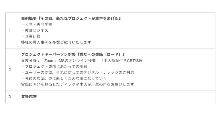 『eラーニング×Zoom』を連携したオンライン授業、本人認証付きオンライン試験の詳細と導入から実施に至るまでの進め方を実際に開発を担当したディレクタ本人が、ご紹介をいたします。