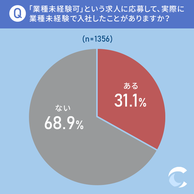 質問1:「職種未経験可」という求人に応募して、実際に職種未経験で入社したことがありますか?