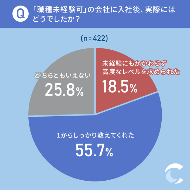 質問2:「職種未経験可」の会社に入社後、実際にはどうでしたか?