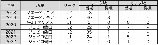 作陽高校 - びわこ成蹊スポーツ大学 - ツエーゲン金沢 - 横浜F・マリノス - ジュビロ磐田