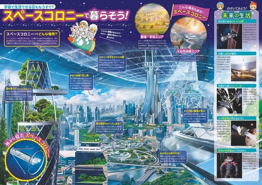 || 部屋に貼っても楽しめる大判付録は、月のリアルな地図と未来の宇宙都市・スペースコロニーを収録
