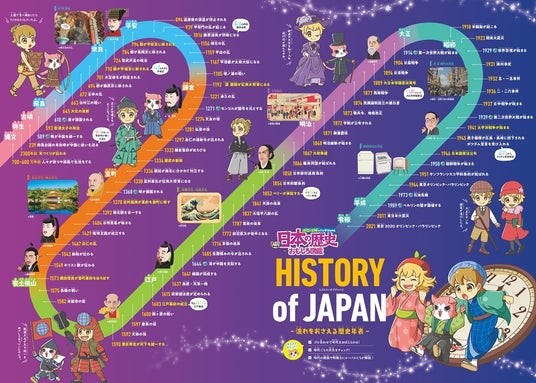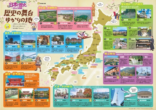 || 部屋に貼っても楽しめる大判付録は、見た目も楽しい年表とゆかりの地MAPを収録