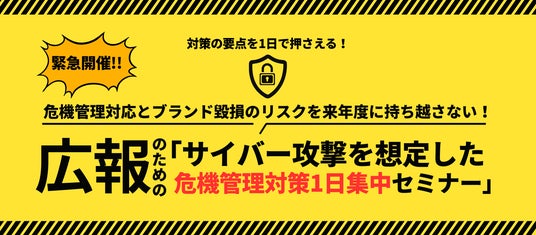 株式会社宣伝会議(本社:東京都港区/代表取締役社長:高橋 智哉)は、サイバー攻撃発生時に広報が取るべき初動対応を1日で学ぶ「広報のためのサイバー攻撃を想定した危機管理対策1日集中セミナー」を1月26日(月)に緊急開催します。
