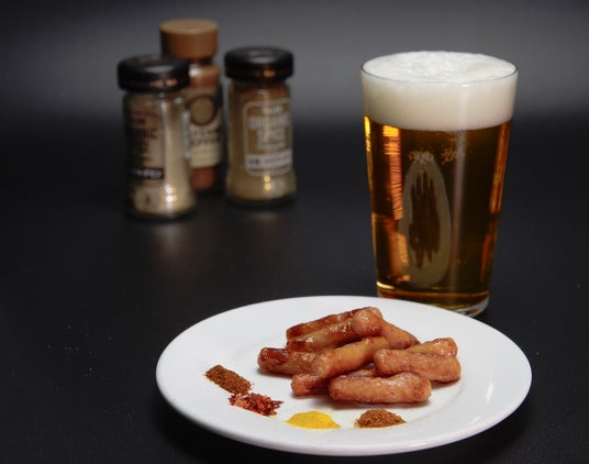 ビールと5種のフレーバー付きポークビッツを楽しめる「酒盛りセット」