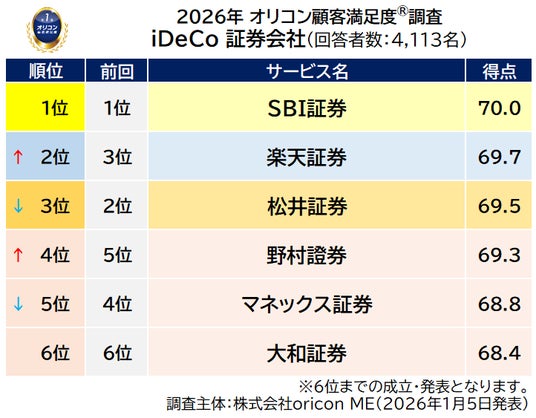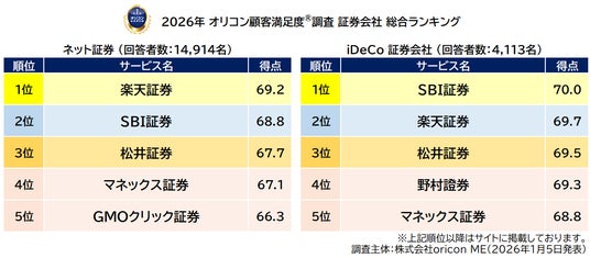 オリコン株式会社(本社:東京都港区 代表取締役社長:小池 恒、略称:オリコン)は、グループ会社である株式会社oricon MEが、実際のサービス利用者を対象に第三者の立場で実施した『ネット証券』『iDeCo 証券会社』についての顧客満足度調査の結果を、2026年1月5日(月)14時に発表いたしました。