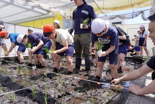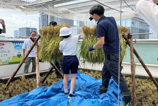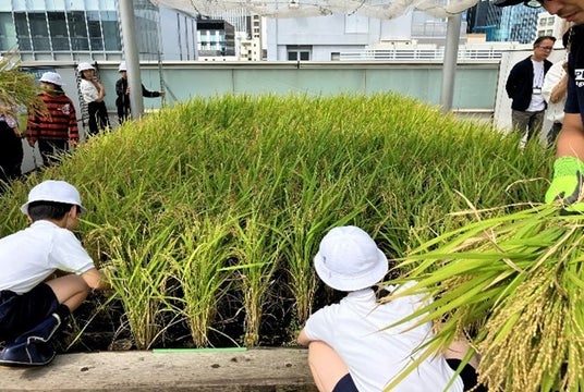 その一環として2020年より、東京都中央区日本橋茅場町にある茅場町オフィスの屋上に田んぼを作り、子供たちと一緒に米づくりを行う「茅場町あおぞら田んぼプロジェクト」に取り組んでおり、本年も中央区立阪本小学校の児童たちと一緒に田植えから収穫までの米づくり体験を行いました。
