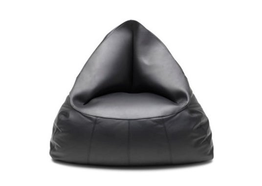 上質で柔らかなセミアニリン染めのレザーに、堅牢なサドルレザーを組み合わせたピラミッド型のビーンバッグ。リラックススペースのアイキャッチとして目を惹くアイテムです。