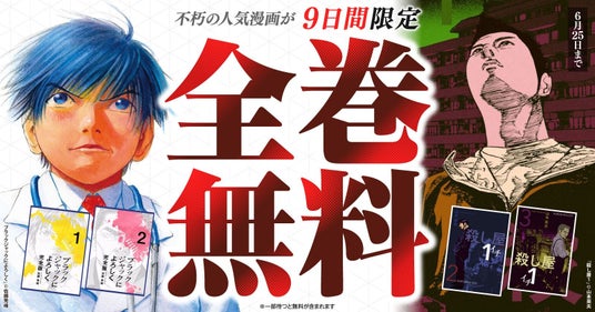 通常時では1巻3話まで誰でもいつでも無料のところ、「殺し屋1」「海猿 完全版 」「新ブラックジャックによろしく 完全版」は期間中誰でも全巻無料として公開。