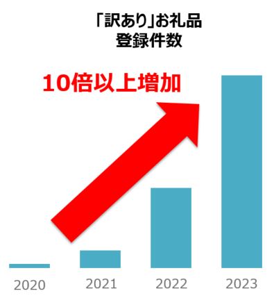 物価高の影響で注目が高まり人気の高い「訳ありお礼品」。寄付件数は2年前と比べて3.8倍以上、お礼品登録件数は10倍以上に増加しています。