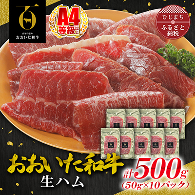 全国的にも珍しい和牛の生ハムです。おおいた和牛をふんだんに使っています。50gずつの小分けパックになっているため、家族などへのお裾分けにも便利と人気のお礼品です。