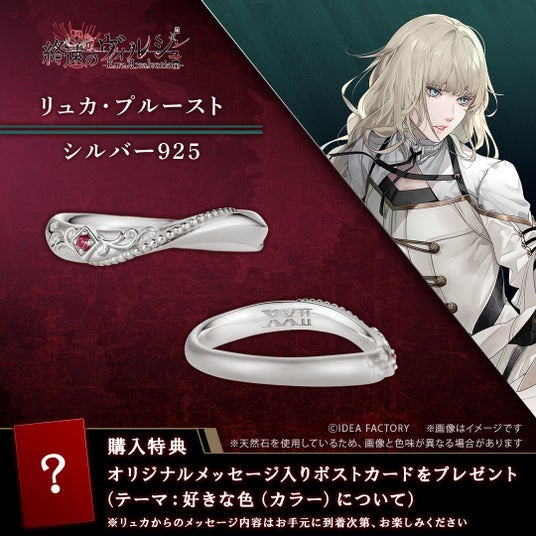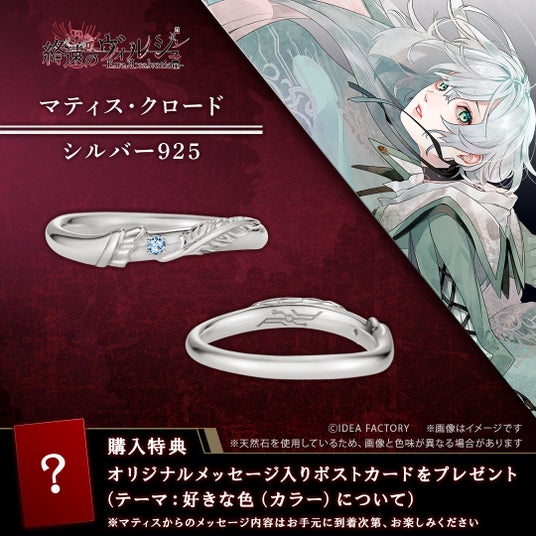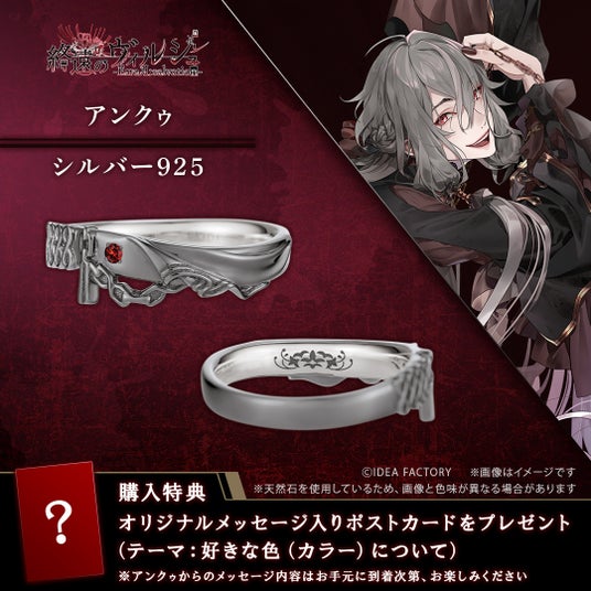 株式会社ユートレジャー(本社:東京都新宿区、代表取締役:伊藤 崇史)は、アイディアファクトリー株式会社(本社:東京都豊島区、代表取締役:佐藤 嘉晃)が手掛ける女性向けゲームブランド「オトメイト」が贈る恋愛アドベンチャーゲーム『終遠のヴィルシュ』とのコラボレーションアイテム「モチーフリング(指輪)」の予約受付を、2024年11月7日(木)~12月5日(木)の期間、ユートレジャーオンラインショップ、ユートレジャーコンセプトストア池袋にて行います。