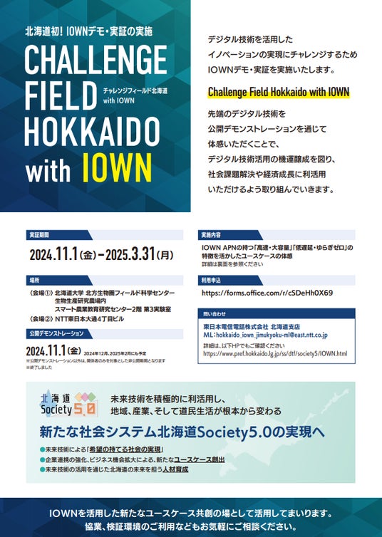 このたび、NTTグループが多くのパートナーと共に推進する最先端デジタル技術「IOWN APN」を活用し、デジタル技術の有用性や道民・国民の生活をより便利で豊かにすることを体感できるデモンストレーションを実施しますので、ぜひご来場ください。