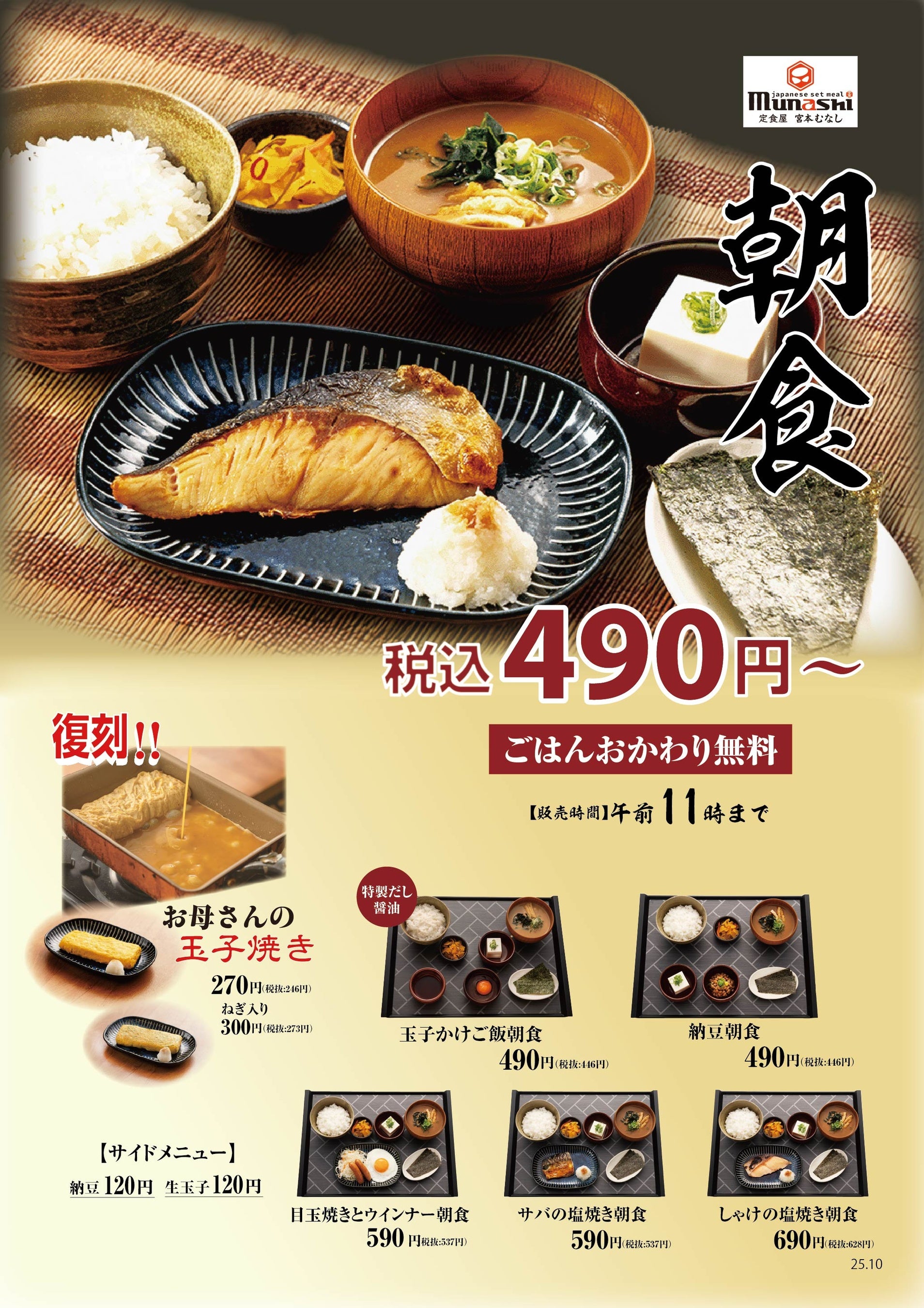 M&Sフードサービス株式会社(本社:大阪府大阪市、代表取締役社長:夏井 克典)が運営する定食チェーン「定食屋 宮本むなし」では、グランドメニューを改定し秋冬にピッタリな新メニューを2025年10月22日(水)より販売開始します。