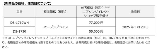 エプソン販売株式会社は、A4ドキュメントスキャナーの新商品として、『DS-1760WN』『DS-1730』を2025年5月29日より発売します。