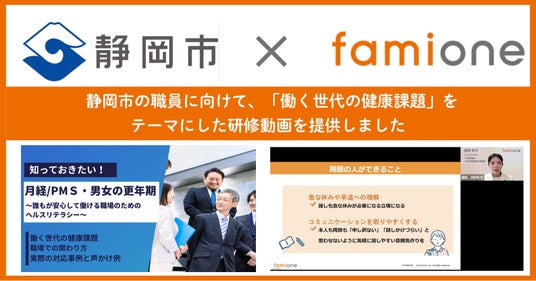 「子どもを願うすべての人によりそい 幸せな人生を歩める社会をつくる」をビジョンに掲げ、法人の従業員向け福利厚生や自治体の住民向け支援を行うヘルスケアサポートサービス「ファミワン」 https://famione.com/benefit/ などを展開する株式会社ファミワン(本社:東京都渋谷区、代表取締役:石川勇介)は、静岡市(市長:難波 喬司、以下 静岡市)より委託を受け、静岡市職員に向けて、「働く世代の健康課題」をテーマにした研修動画を提供いたしました。