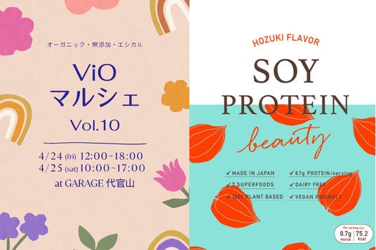 ViOマルシェは、オーガニック・無添加商品の製造・販売者が集う産直マルシェです。ハリウッドからは、大豆プロテインブランド「ソイプロビューティ」を含む3ブランドが参加。ソイプロビューティからは、2026年5月22日(金)に発売予定の新フレーバー「ソイプロビューティ ほおずき」を、発売に先駆けて初披露します。そのほか、オーガニック・無添加商品の魅力をご体感いただけるアイテムをお届けします。