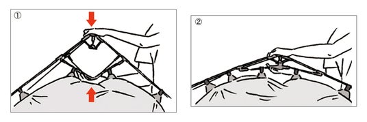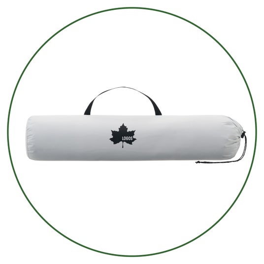 LOGOS独自の「Q-TOP SYSTEM」採用で、折りたたまれたフレームを伸ばしてロックするだけなので、組立て簡単&撤収もスピーディー。約30秒で簡単に組立てられる。シートとフレームが一体化しているためパーツを紛失する心配がない。