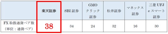 ■主要ネット証券、FX取扱通貨ペア数比較表