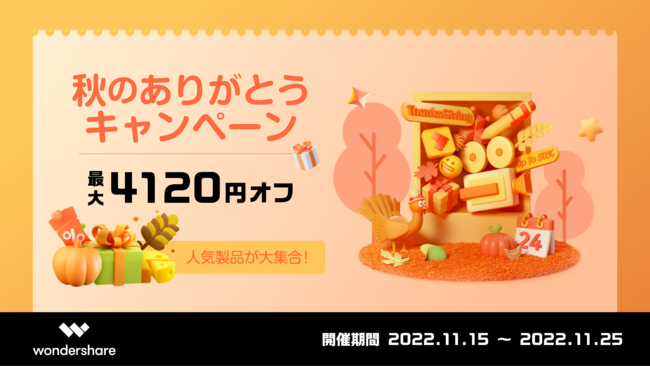 ■ 特設ページ:https://www.wondershare.jp/thanksgiving-sale.html