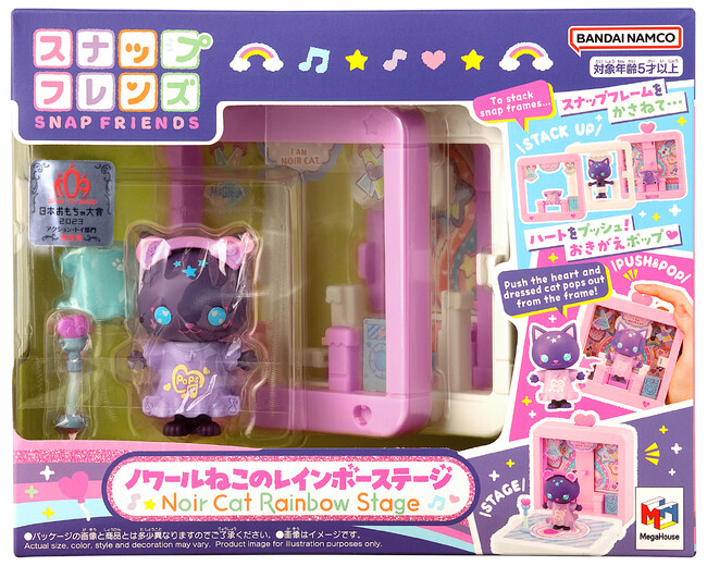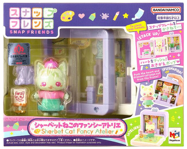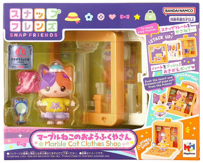 ねこちゃん1体入りの『スナップフレンズ ノワールねこのレインボーステージ』『スナップフレンズ マーブルねこのおようふくやさん』『スナップフレンズ シャーベットねこのファンシーアトリエ』は、日本おもちゃ大賞2023 アクション・トイ部門 優秀賞を受賞しました。