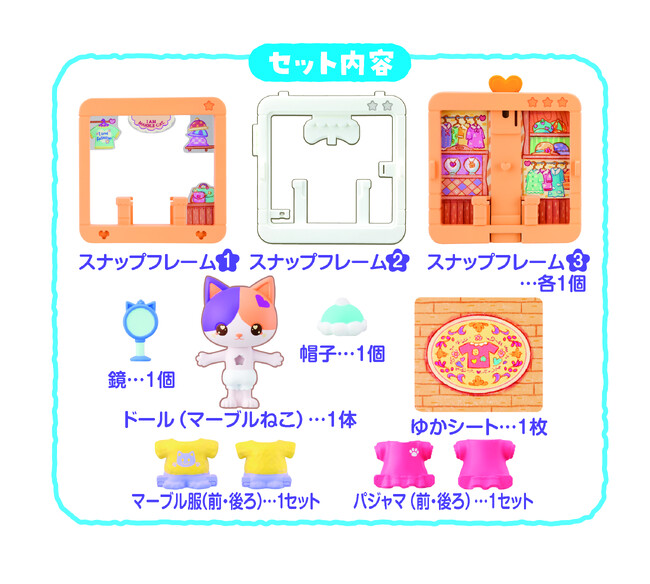 ●スナップフレーム…3枚 ●ゆかシート…1枚 ●ドール…1体