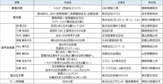 「性能向上リノベ デザインアワード 2024」受賞一覧