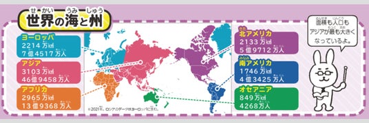 ◆「世界の海と州」、北極と南極の特徴、違いもキャラクターの解説つきで掲載