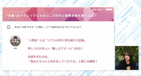 ・Z世代との信頼関係の築き方からプロモーションの仕方まで、とても具体的かつ台本なしのリアルな意見が聞けてわかりやすかったです。