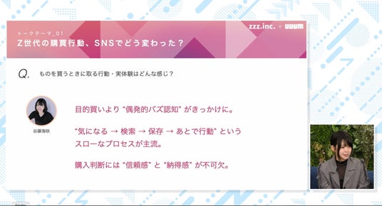 UUUM株式会社(本社:東京都港区、代表取締役 社長執行役員: 梅景 匡之、以下UUUM)は、2025年4月18日(金)に「SNSに生きるZ世代のリアル! 購買行動の『いま』を完全解説」と題したオンラインセミナーを開催いたしました。