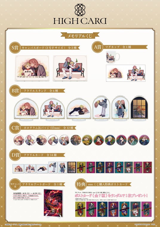 TVアニメ『HIGH CARD』のオンラインくじ「eeoくじ」が発売決定! 本日8月5日(月)から通販サイト「eeo Store online」で販売がスタートしました。