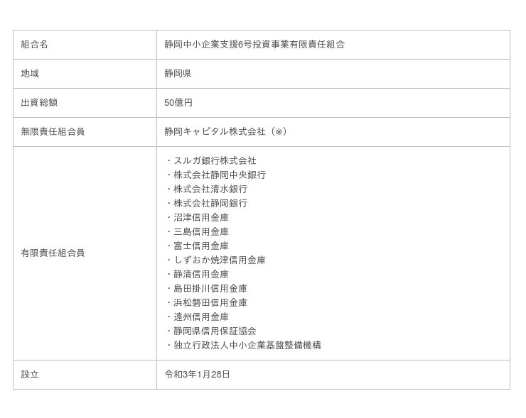 ◆「静岡中小企業支援6号投資事業有限責任組合」の概要