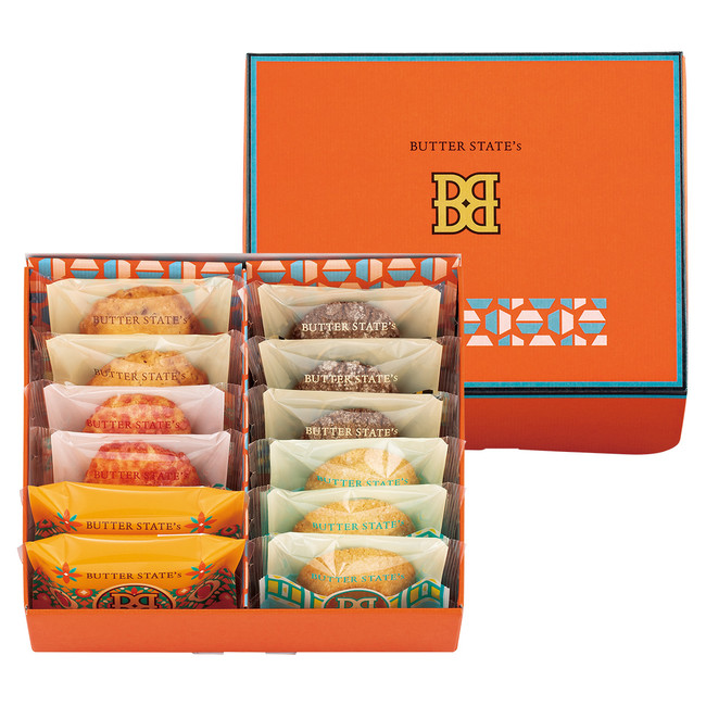 代表作『バターステイツ』は、北海道産バターの香りが口いっぱいにあふれる “最香峰のバタークッキー”。北海道産バターを極限まで練りこんだバターリッチなスペシャル生地で、食べる前から香りあふれる“最高峰にして最香峰”のおいしさを作りあげました。本品の特徴である山の姿は、バターのとろけた証。生地のバターがなだれとろけた瞬間で焼きとめる特別製法「なだれとろけるマウンテン焼き」で、サクサクのバターマウンテンに仕上げています。芳醇なバター香るベーシック、ショコラ、アーモンド、ベリーシュガーと、新作マンゴーバターの豊富な5味。