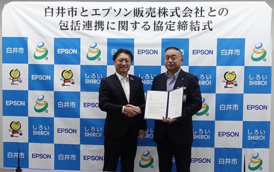 エプソン販売株式会社(以下、エプソン販売)と千葉県白井市(以下、白井市)は、地域の活性化と市民サービスの向上を目的とした包括連携協定を締結しました。本協定により、エプソン販売と白井市は、地域社会の発展に向けた多岐にわたる取り組みを共同で推進していきます。