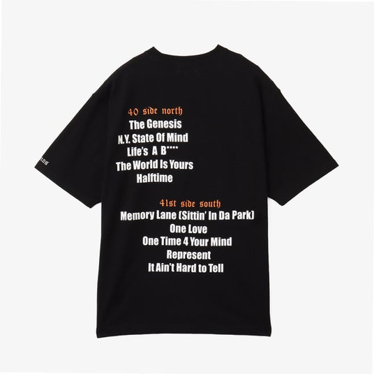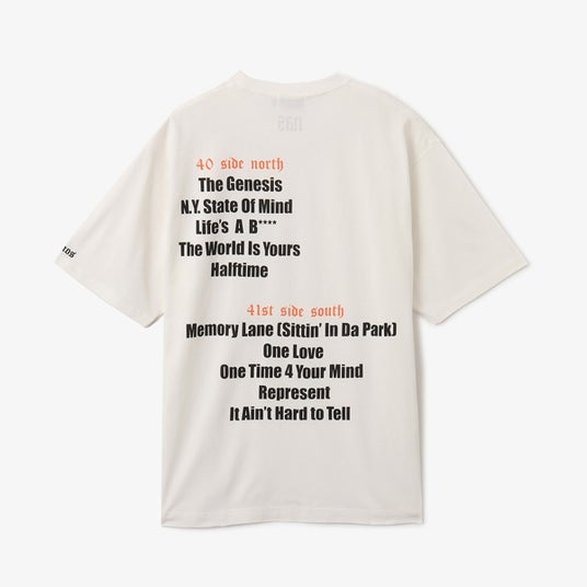ヒップホップの歴史において、最も影響力のある楽曲の一つとされているタイムレスクラシックなトラック「N.Y. State of Mind」のグラフィックをフロントに、背中にはNASのロゴをビッグサイズでプリント。